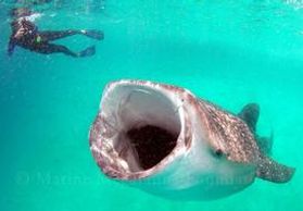 Whale sharks are the largest sharks on the planet, growing up to 40 feet long. They eat krill, abundant in the Cancun area. Known as gentle giants, the youth often playful, divers have been known to hitch a ride.