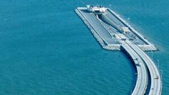 Above is an areal photograph of the Hampton Roads tunnel which allows the ships pictured above to easily exit the harbor.