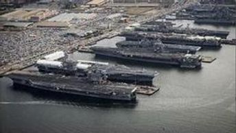 I do a lot of research for every book and this novella was no different. Macho Marine actually came up with the action black moment and figured out how the terrorists could do it. Above is the USS George Bush and to the right are five, nuclear-powered aircraft carriers docked at Naval Station Norfolk in December 2015. The picture doesn't show all the dozens of other ships that accompany them when they go out for months at a time.